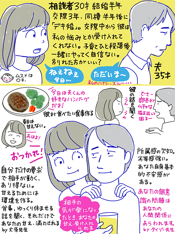 大原先生の「彼が私が甘えても受け入れてくれない とても寂しいんです、だからイライラするんです」に同意してた相談者。
