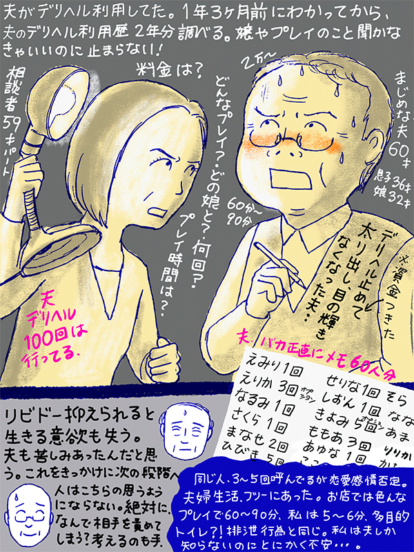 まじめな夫がデリヘル通いしてた。デリヘルに関して(夫に)聞かなきゃいいのに止まらない。不安で不安でしかたない59歳女性のご相談。