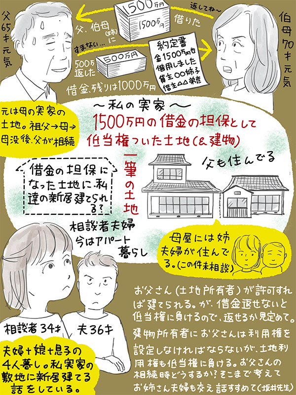 父が伯母に1500万借りて抵当権がついた実家の敷地の一部に