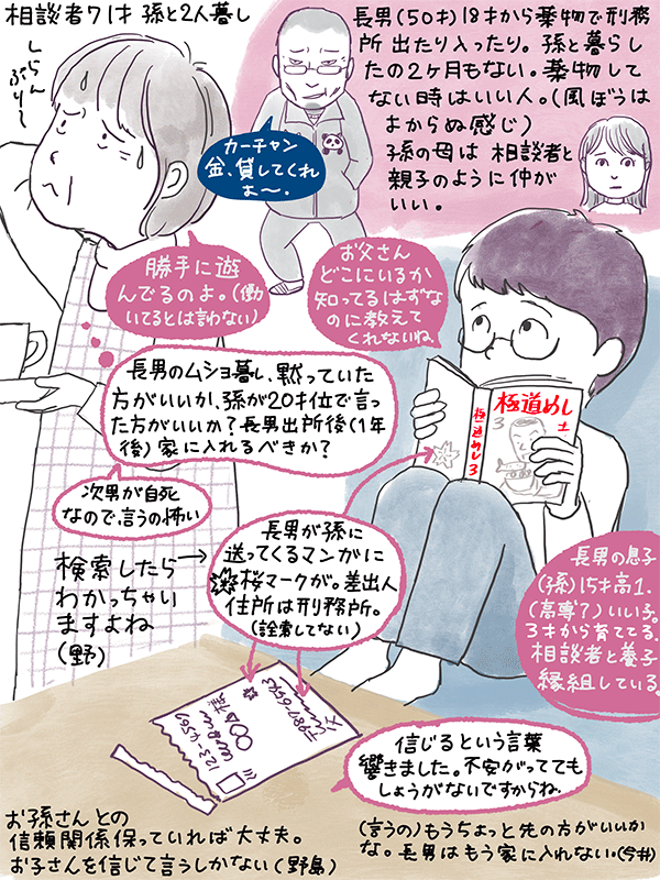 長男の息子(孫)を3歳から育てているが、長男が刑務所にいる事は言っていない。