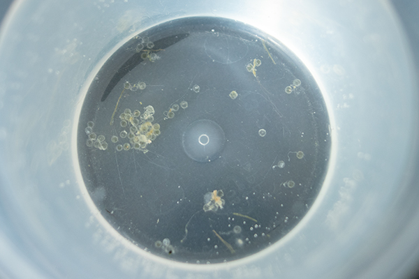 ヒメダカが産卵したので水槽から取り出した。「とびこ」みたいな感触。