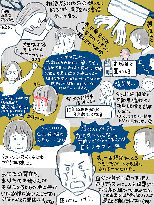 幼少時に両親から酷い虐待を受けて育った。健在の母親に反省の余地があってもいいと思うが、過去の(都合の悪い?)事は歪曲している。法的手段でなんとかならないか?という50代男性のご相談。くわしくはコチラいつもありがとうございます。