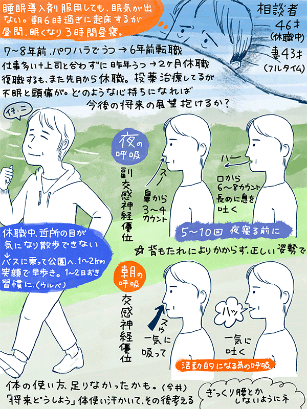 (薬の効果があんまない、本読んで改善したとか言ってたので、心のもちようからアプローチの答えが欲しかったのかも)