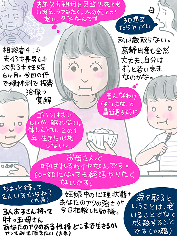 昨年祖母が亡くなり、死と老いを考えるようになりこの一年生きた心地しない。自分はずっと若いままだと思っていた。41才これからどういう心構えで生きたら?という女性のご相談。