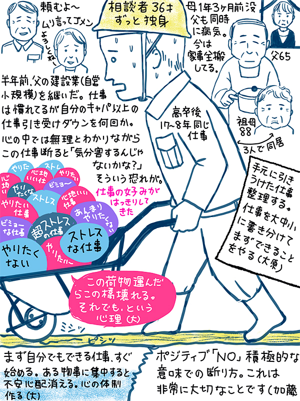 半年前、父の建設業を継いだが自分のキャパ以上に仕事を引き受けダウンすること数回。仕事の取り組み方について悩んでる36歳男性のご相談。くわしくはコチラいつもありがとうございます。