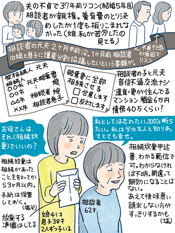 37年前に離婚した元夫が亡くなり遺産分割したいという書類が娘と息子の所に来た。