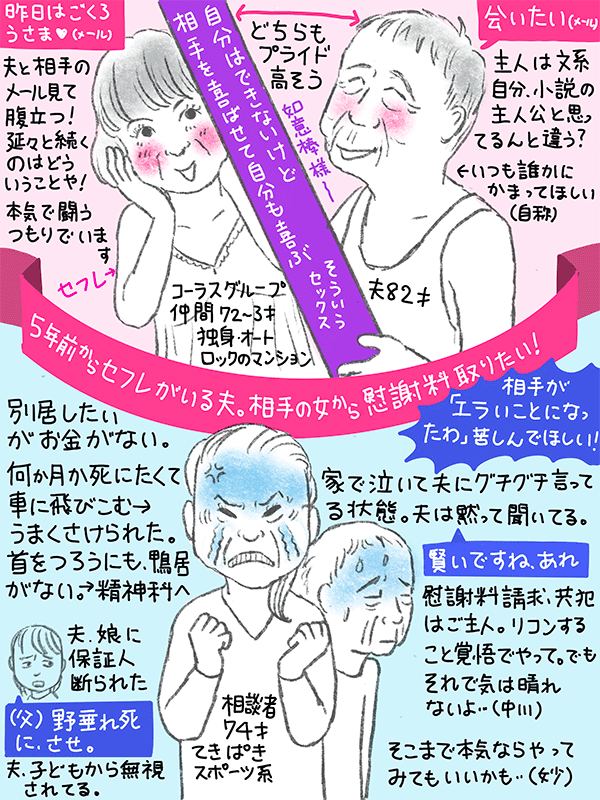 夫が5年前からコーラスグループの女性とセフレ関係というのが判明した。