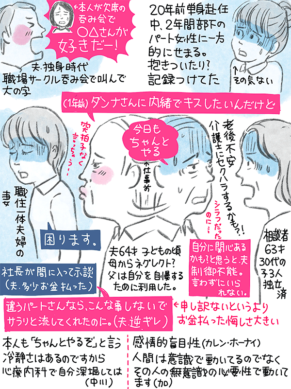 自分に関心あるかも?と思った女性に制御不能になり突然変な事をいったりやったりしてしまう夫。