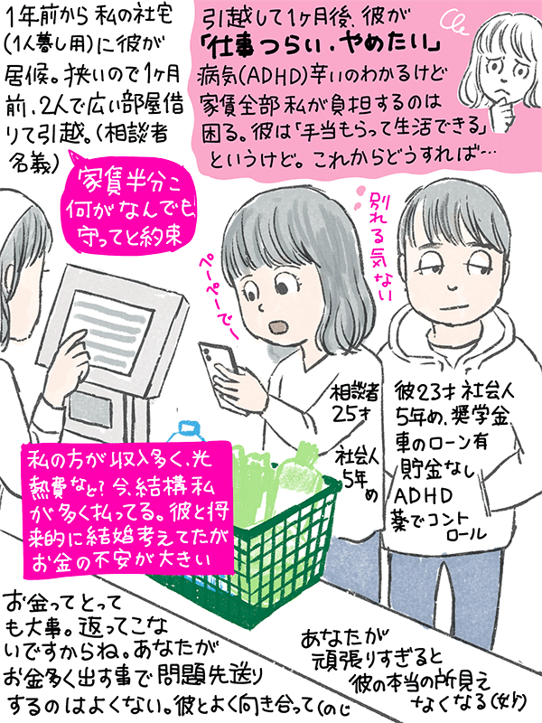 狭いので、1ヶ月前二人で広い部屋へ引っ越し。(相談者名義)家賃は半分こを守ると約束した。