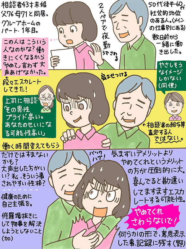 数日前から一緒に働く男性のセクハラが段々エスカレートしてきた。