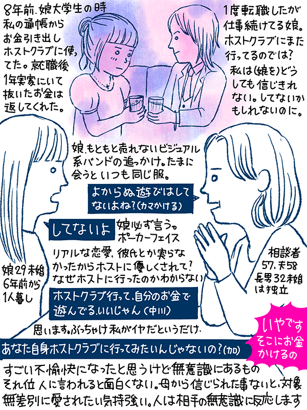 お金は返してくれたが、一人暮らし6年目、29歳の娘がホストクラブにまた行ってるのではないか?