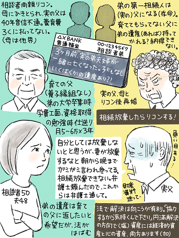 弟の遺産は、育ての父に返すのを希望してるのだがと言う50歳女性のご相談。