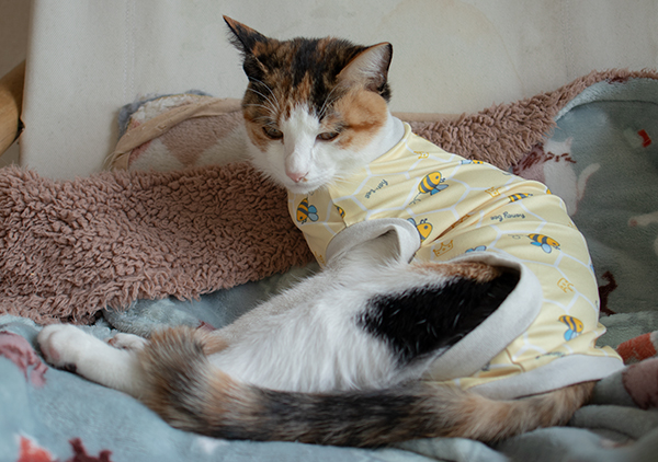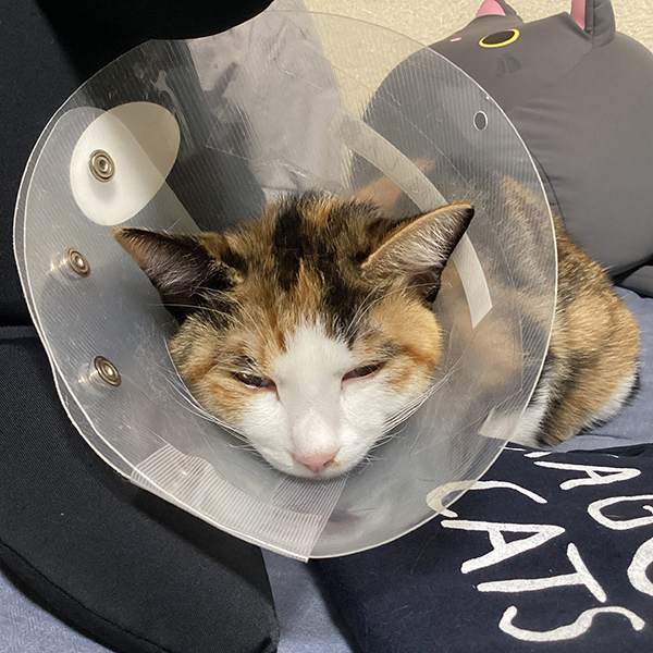 傷口(1センチくらい)舐めるの防止で、エリザベス着用。
