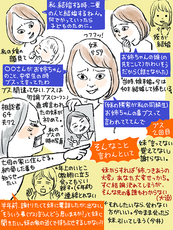 過去に妹から直接「(〇〇さんが)お姉ちゃんのことブスって言ってたわ」