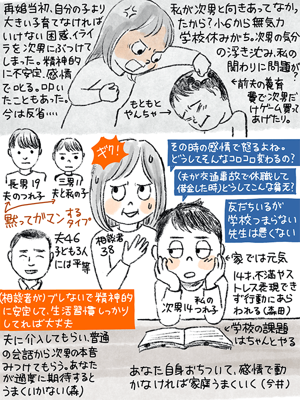 3人の男子の母親だが、私の連れ子の次男が学校を休みがちに。無気力が続いてる。(家では元気)