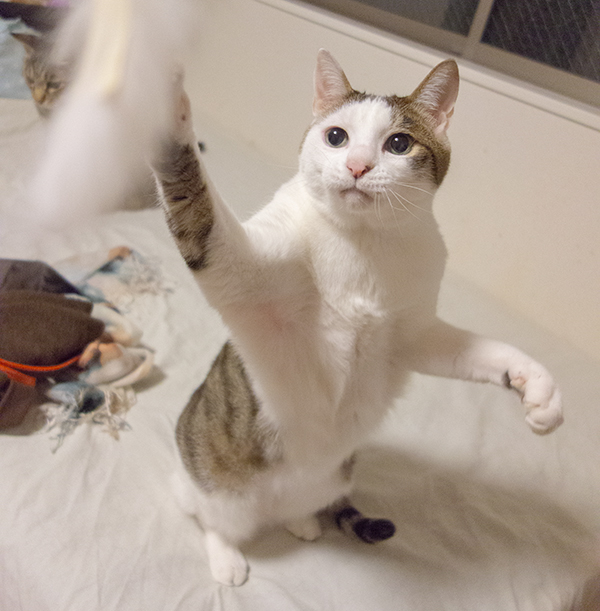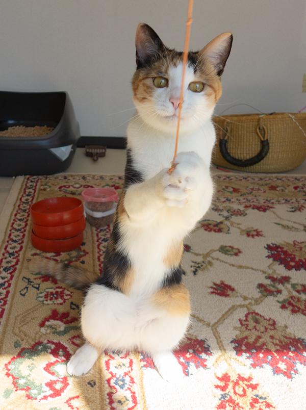 猫おもちゃ「ふりふり三まいワルツ」に夢中なお方達。「かしゃびょん」に並ぶ人気おもちゃ