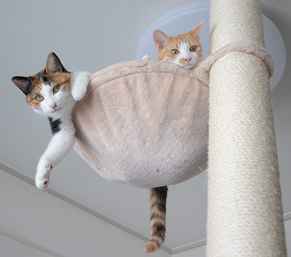 狭いハンモックに2ぴき。重量オーバーな感じだニャ汗
