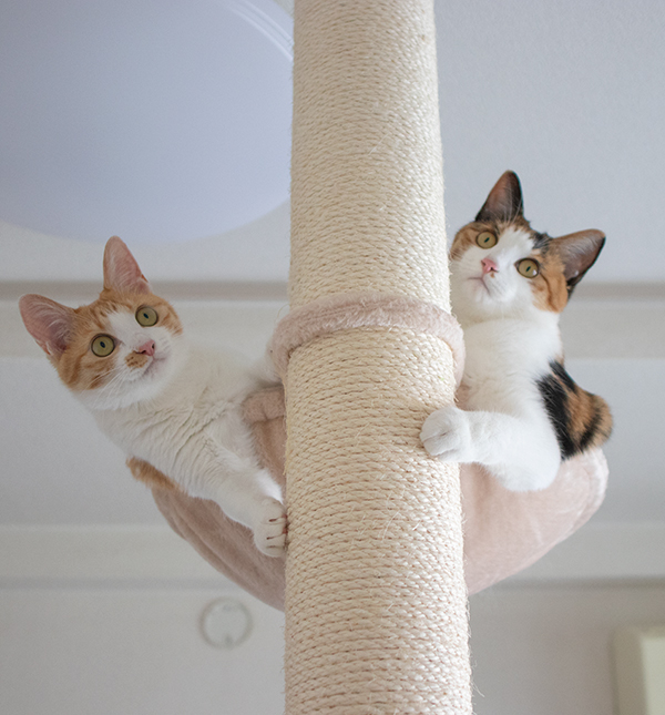 先週買った「おうちで木登りタワー」チャイとコウメはよく登る。