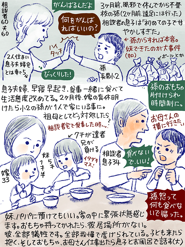 5歳と1歳半の妹がいて、相談者息子が言うには「(小二の孫)初めての子で甘やかしすぎた。」