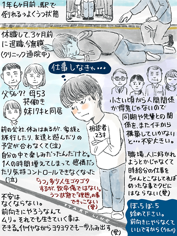 一年半前に駅で倒れ、抑うつ状態と診断。休職を経て3カ月前に退職、今は無職。