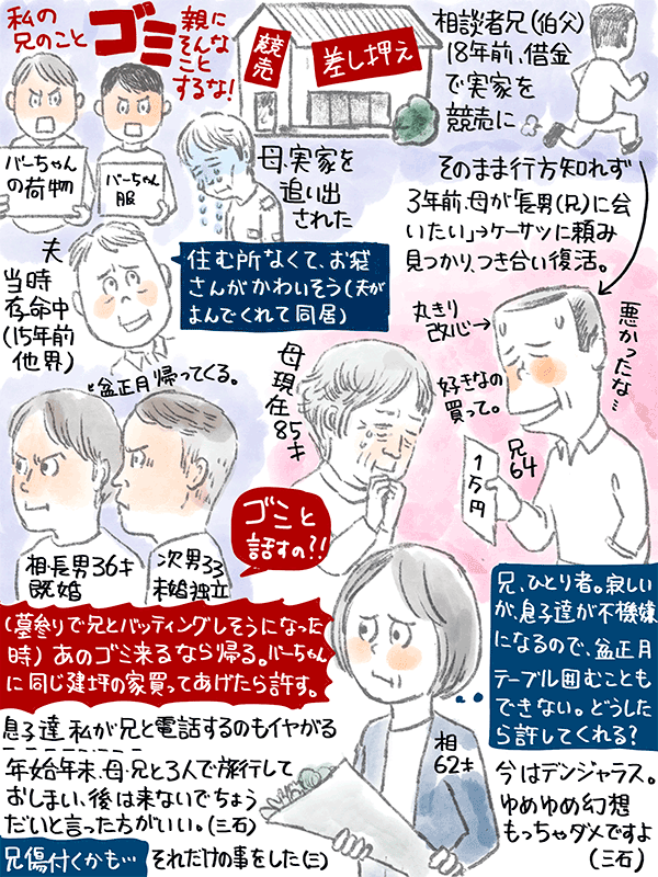 私の兄だが、息子達には酷い事をしたという62歳女性のご相談。
