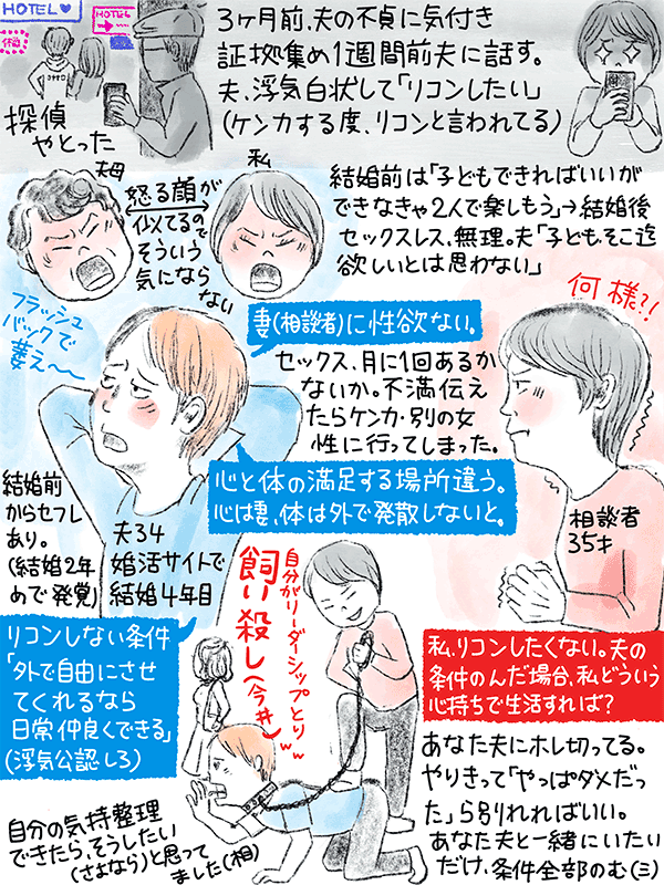 私は離婚したくないが、「離婚したくないなら、外で自由にさせてくれ。それをのめるなら日常仲良くできる」と夫から離婚しない場合の条件を挙げられた。