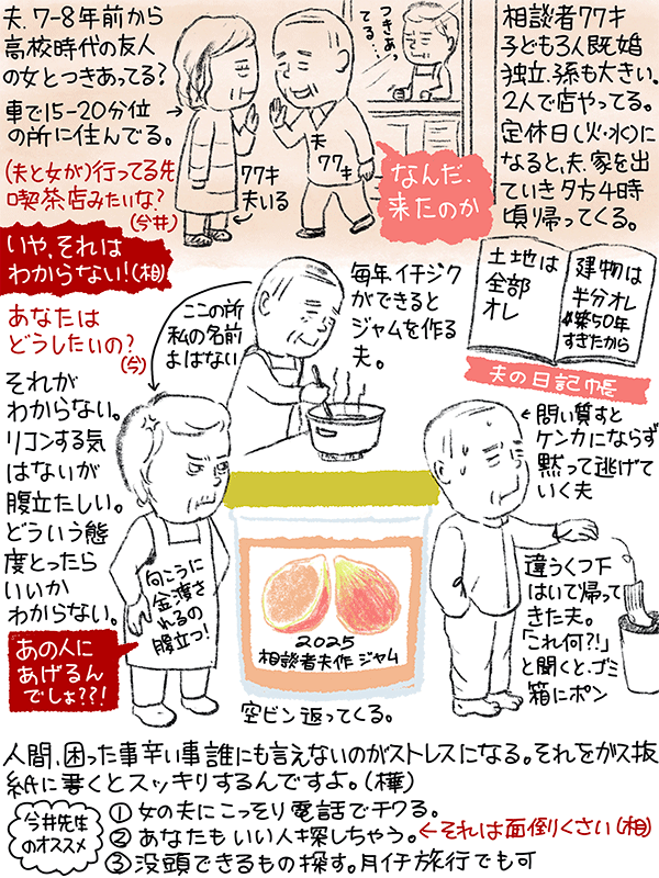 離婚する気はないが腹立たしい、でもどういう態度をとったらいいのかわからないという77歳女性のご相談。