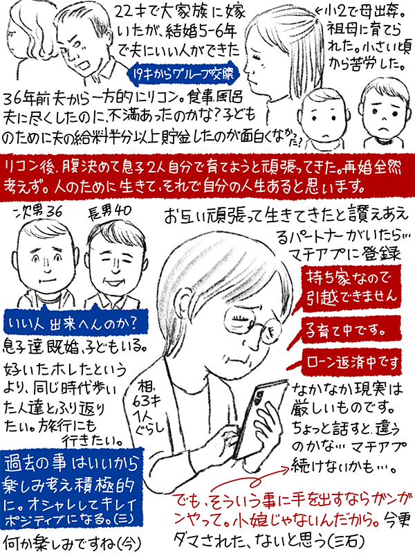 人のために生きて、それで自分の人生があると思います。今までの生き方に共感していただいたり、お互いの労苦を讃えあうパートナーがいたら、という63歳女性のご相談。