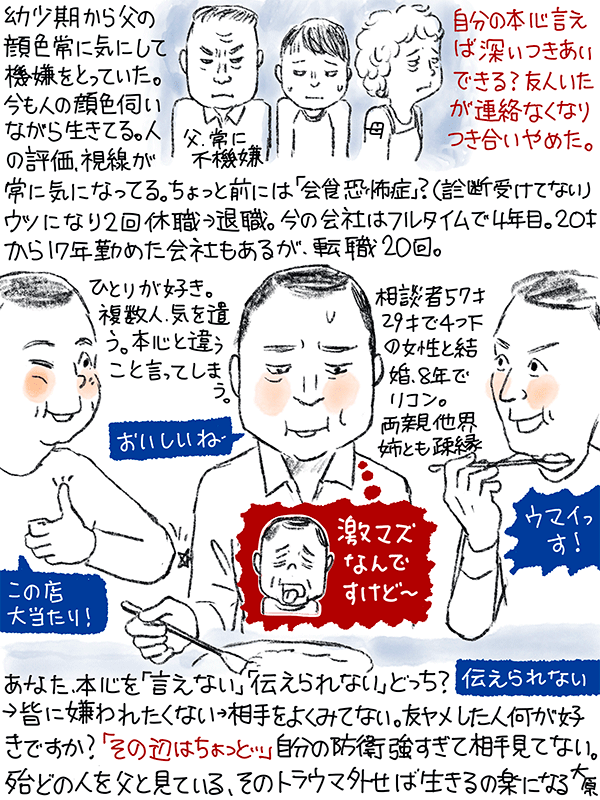 幼少期は父親の顔色伺いながら、今も他人の評価や視線が常に気になりながら生きている。