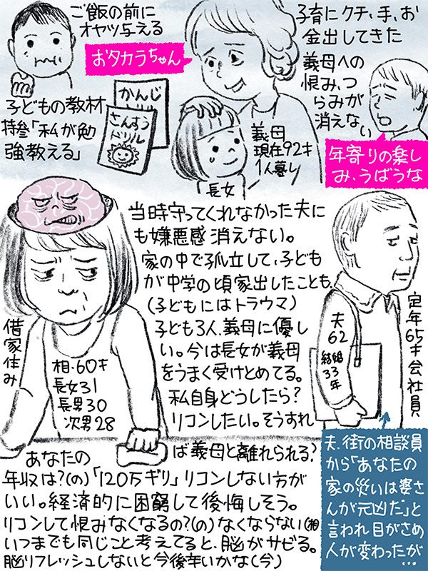 自分でもどうしたらいいかわからないが、離婚した方がいいのか、そしたら義母と離れられるという60歳女性のご相談。