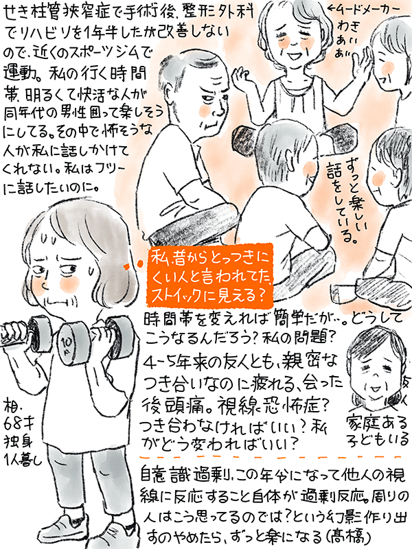 私はそれに入り込めない。その中の一人は私に話しかけてもくれない。でも私は普通に話をしたい。私に問題ある?私を変えていきたいが、明るく話するのに無理がある。普通に話せるにはどうしたら?人の視線も気になるという68歳女性のご相談。