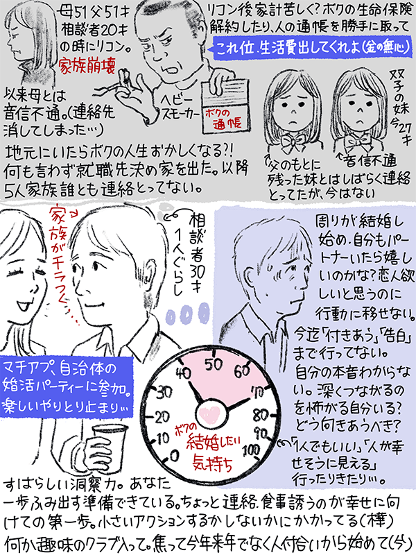 人を好きになる前に、20歳の頃に家族崩壊したのも脳裏にチラつく。逃げ?