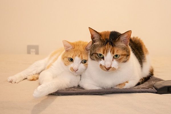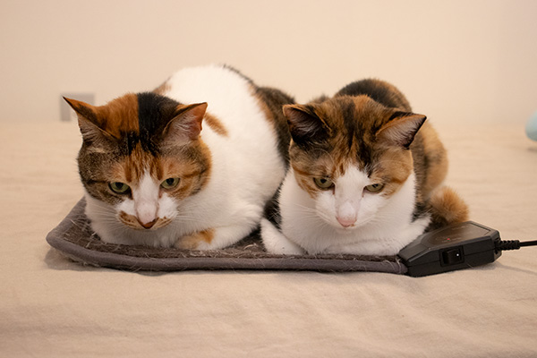 冷える夜が続いて、あったか座布団にペッタリな猫ズ。