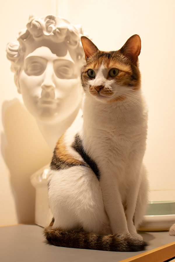 メディチ(ミケランジェロ作)と決めポーズのミケーネ。
