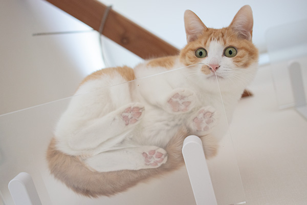 透明のキャットステップに乗ってくれるのは基本チャイ子。