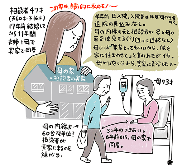 実家に住み着く、母の内縁夫に出て行ってもらいたい47歳女性のご相談。