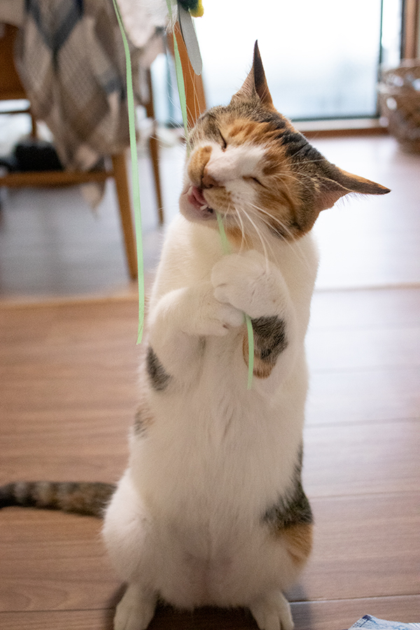 ミケーネたん40 3件の返信 新しい「じゃれ猫ブンブン」に早速食いつくミケーネたん。 余程気に入ったらしく、食いついて離さない。(唸ってる) このあとヒモ、食べちゃった。大丈夫か?! のびのびビーたん。