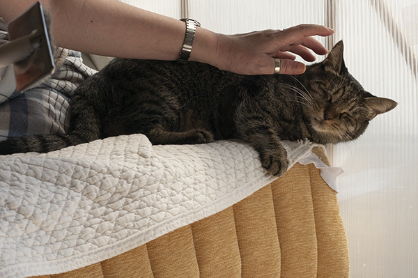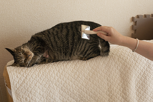 猫かぶりタマコ コメントを残す 友人のバナエさんが、タマオにお花を供えに来てくれた。ありがたにゃー。 ついでにタマコをブラッシング。 オバちゃんには見せない、愛くるしい態度…。 ただの可愛いネコじゃんかよ、タマコ。 オバちゃん以外のニンゲン(特に女性)は大好きなタマコ。本当に謎。 何故、オバちゃん見ると逃げるのか、理由を教えて欲しい。独身だから?