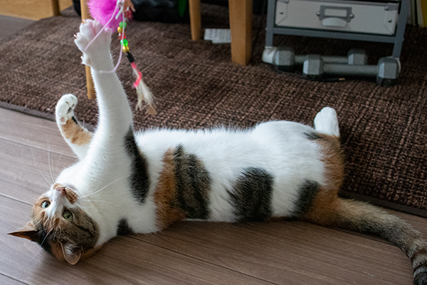 オモチャ振ってもすぐに「寝技」に持ち込むミケーネたん。 体が重くなってきたもんね。(涙