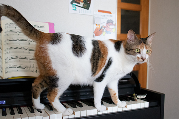 ミケーネたん45 コメントを残す ピアノを弾くミケーネたん。 全音や半音(隣り合った鍵盤)の和音がメインなので、短調です。 疲れたニャー。 ミケーネたん、鼻の毛が薄いような?カビ? 来月ワクチンだからその時に診てもらおうね。