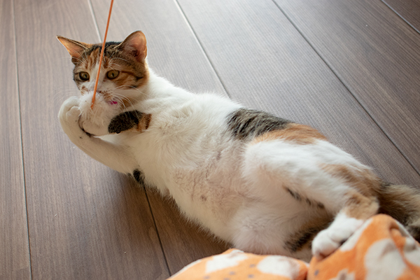 遊ぶミケーネ。なんか、腹が太くなってきたような気がする。 デブネコにならぬよう気をつけねば! (デブネコのお餅みたいな感触も捨てがたいけど)