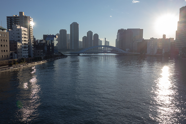 隅田川大橋から永代橋と佃島。佃島、タワマン乱立し過ぎてタワマンの有り難みがない笑。