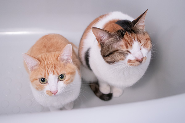 なぜかバスタブに逃げたチャイとミケーネたん。