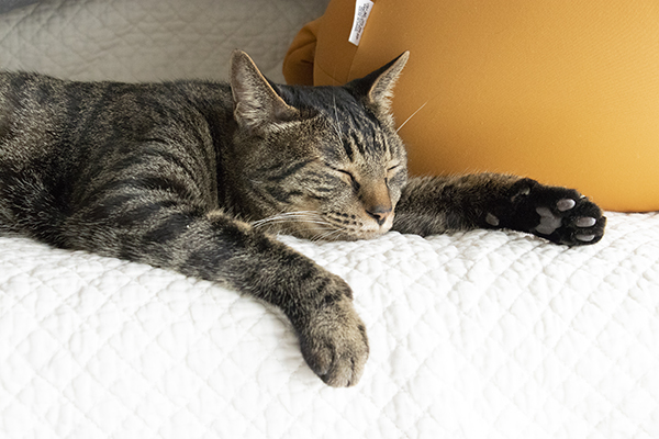 ビーたんの肉球は、キジトラならではのチョコレート色。タマオの肉球、貧血進んだらチョコ色が薄くなってきた気がする〜。