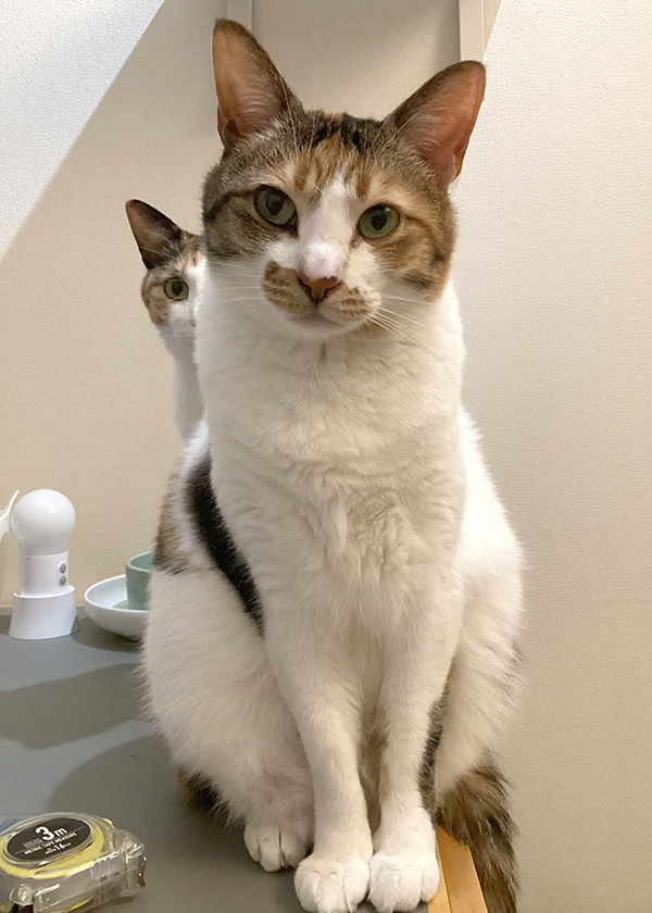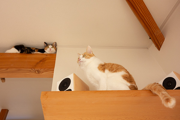 コウメとチャイ。2ぴきとも、本当に高いところが好き。