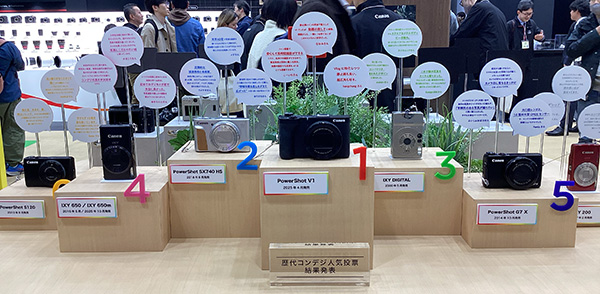 「ぬい撮り体験コーナー」、富士フイルムは「写ルンです」の新システムやチェキ、キヤノンの「歴代コンデジ人気投票」(懐かしいコンデジが!)の展示など、バリバリのカメラファンでなくても結構楽しめます。