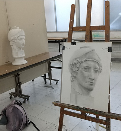 絵画教室、静物の次は石膏像(青年マルス首像)。