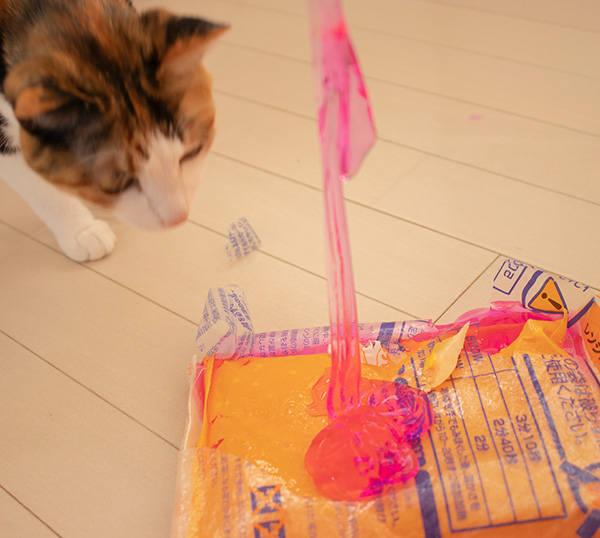 中身はピンクのジェル?プラスチックで「燃えるゴミ」らしい。