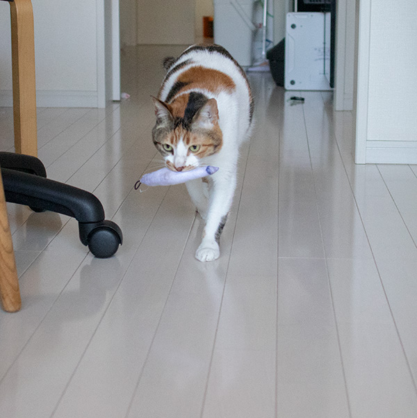 ミケーネたんは投げたおもちゃを拾って持ってくる賢い猫。