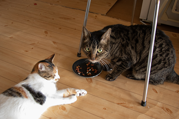 ビーたんのごハンを狙うミケーネ。恐ろしい子…。
